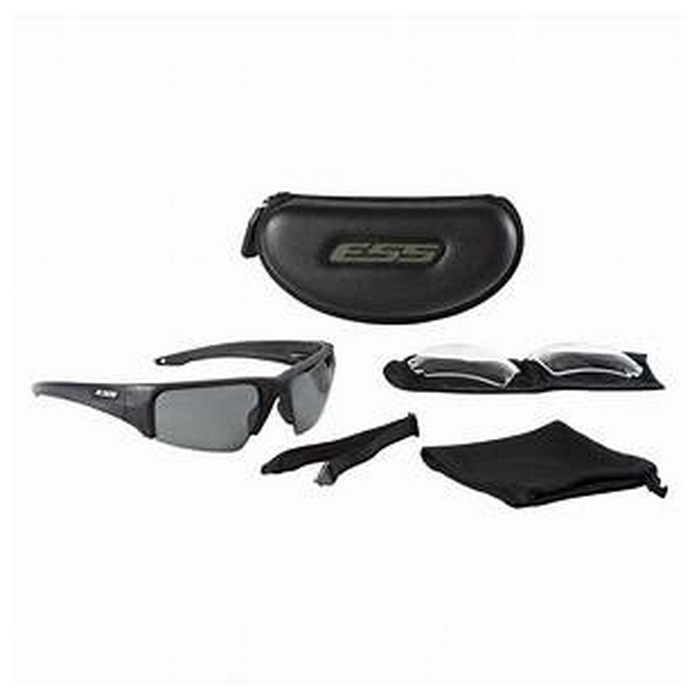 Meet the lightweight and durable Crowbar interchangeable-lens sunglass from ESS. Featuring a frameless bottom lens design and innovative Lens Gate that makes lens exchanges quicker and field of view greater than ever. The military-grade polycarbonate lens material delivers crisp optics, plus a broad range of ballistic protection. A light and balanced fit that won't interfere with hats, helmets, hearing pro or comms gear makes the Crowbar possibly the most versatile ESS sunglass ever created. Key features: Frameless bottom provides increased field of view. Crowbar Lens Gate for Rapid Lens Exchange. ToughZone Lens Coating: Both sides of Crowbar lenses are protected with a scratch-resistant treatment. ESSOPTICS deliver distortion-free optical precision throughout the entire field of view. 2.2mm high-impact 100 percent UVA/UVB polycarbonate lenses. Polarized lenses reduce eye strain by cutting glare from reflective surfaces, such as water, roads and glass. Thin Temple Arms compatiable with hats, helmets, hearing pro and comms gear. Small to Medium Fit. The Crowbar Sunglass exceeds U.S. MIL Spec MIL-PRF-32432, ANSI Z87.1-2010, OSHA and CE EN166 except polarized eye pro which meets ANSI Z87.1-2010 (impact) and OSHA. Kit includes: One Crowbar Sunglass Frame Black with Silver ESS Logo, Polarized Mirrored Gray Crowbar Lenses, Elastic Retention Strap, Microfiber Cleaning Pouch, Zippered Hard Case.