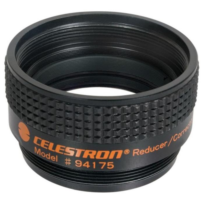 This combination focal reducer and field corrector lens accessory works with all Celestron 5", 6", 8", 9 1/4", 11" and 14" Schmidt-Cassegrain telescopes. This clever accessory makes it possible to have a dual focal ratio instrument, without sacrificing image quality. The Reducer/Corrector is f/6.3 for C5, C6, C8, C9¼ and C11 telescopes and f/7 for the C14 telescope.