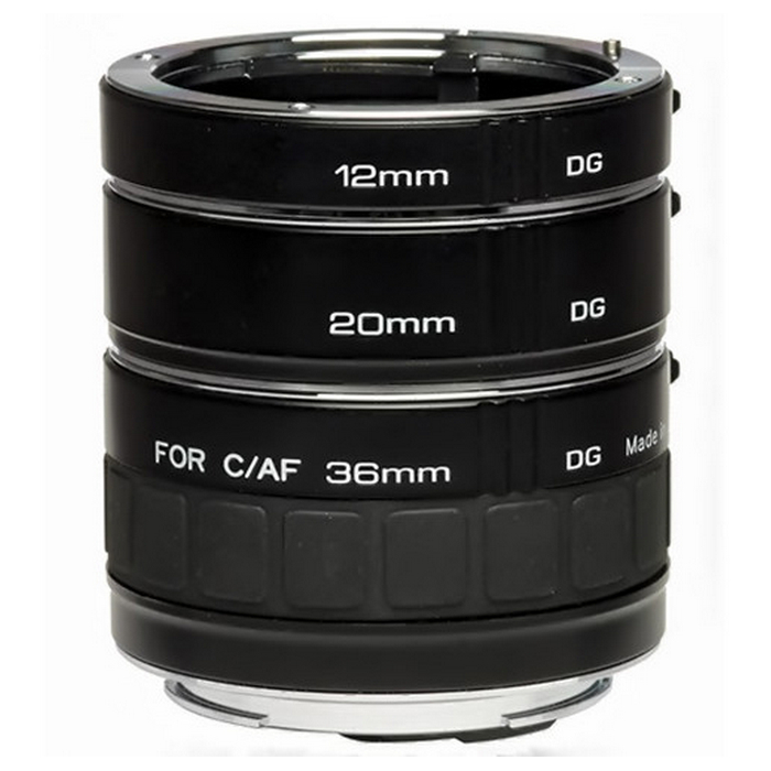 The Kenko Auto Extension Tube Set DG contains three tubes of different length - 12mm, 20mm, and 36mm - which can be used individually or in any combination to obtain the desired magnification. Actual magnification effect changes with each specific lens.