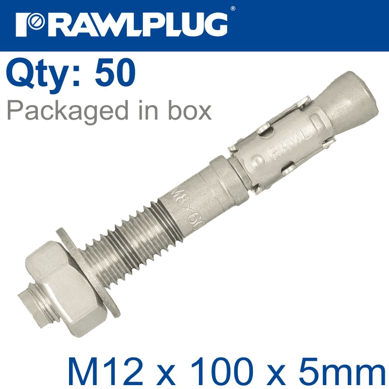 RAWLPLUG Througbolt Ss M12X100X5Mm X50 -Box