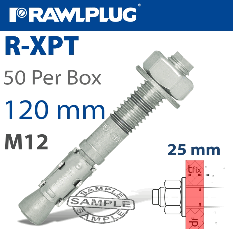 RAWLPLUG Throughbolt M12X120X25Mm X50 -Box