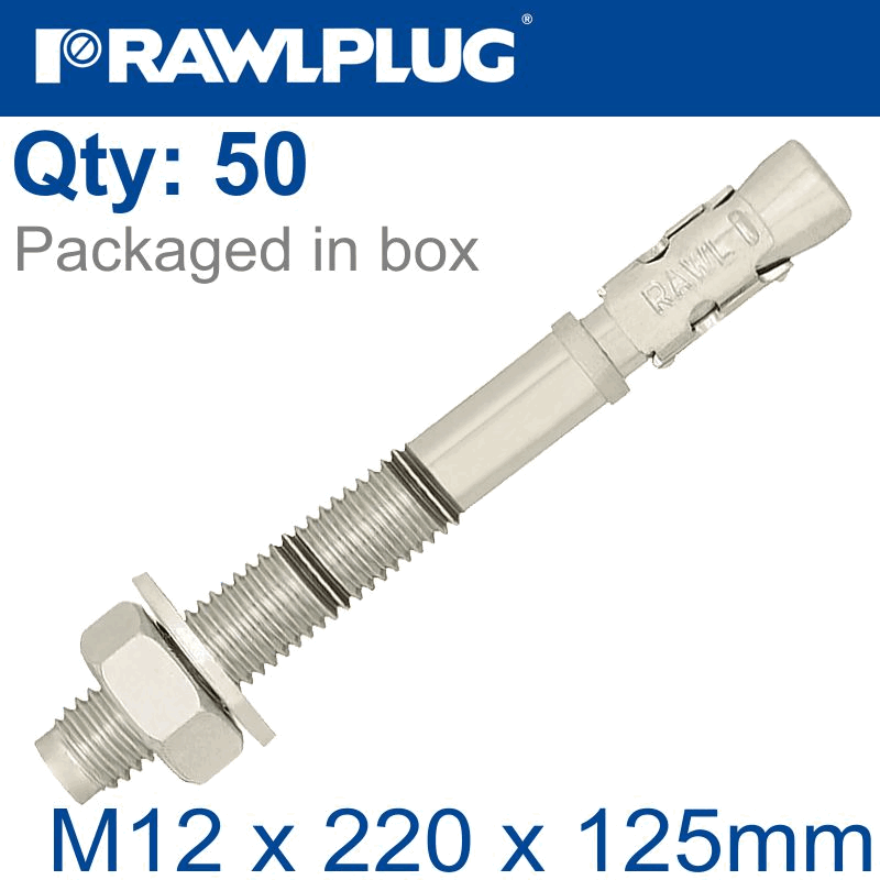 RAWLPLUG Throughbolt M12X220X125Mm X50 -Box