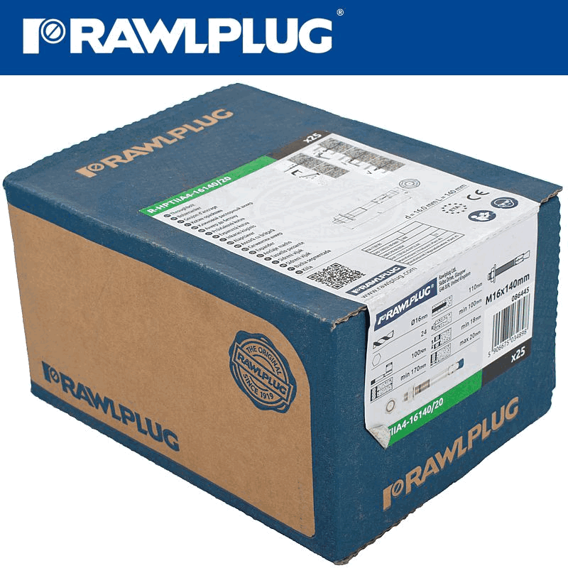 RAWLPLUG Throughbolt M16X140Mm A4 Stainless Steel X25-Box