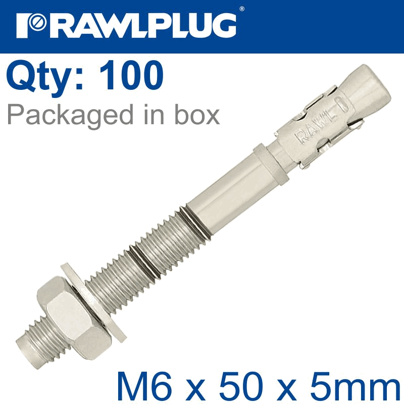 RAWLPLUG Throughbolt M6X50X5Mm X100 -Box