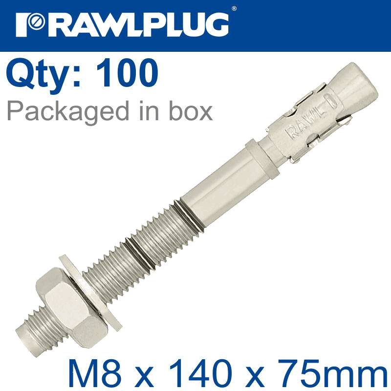 RAWLPLUG Throughbolt M8X140X75Mm X100 -Box