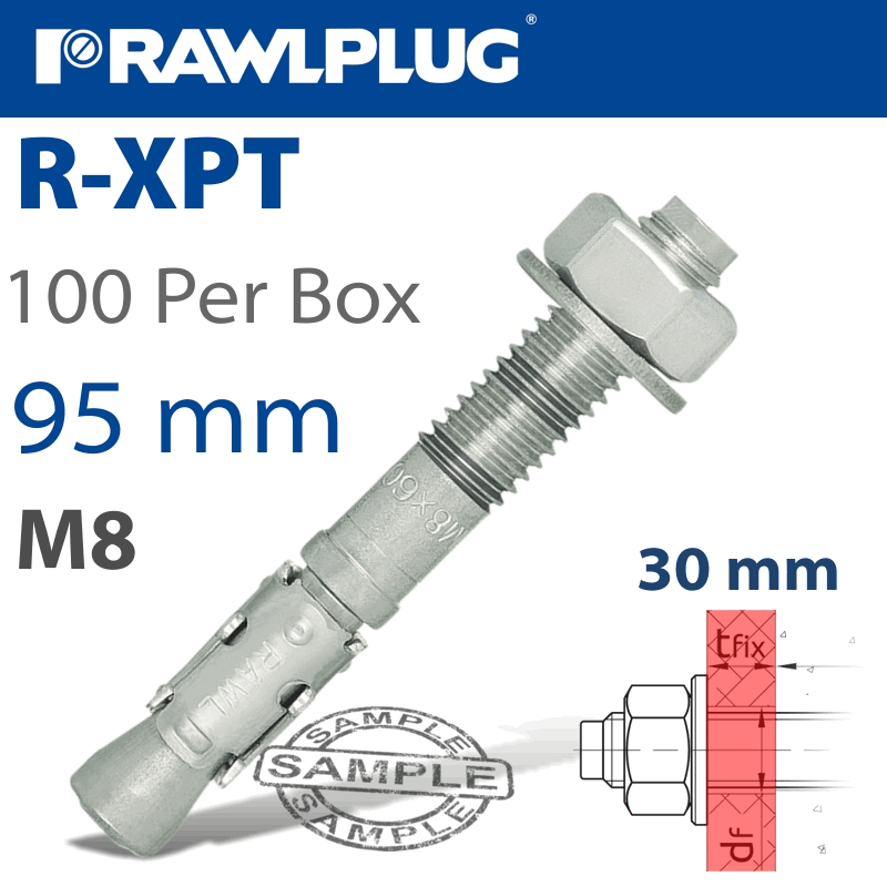 RAWLPLUG Throughbolt M8X95X30Mm X100 -Box