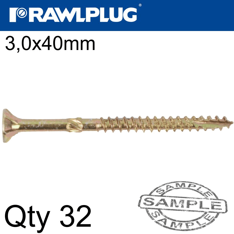 RAWLPLUG R-Ts Hardened Screw 3.0X40Mm X32 Per Bag