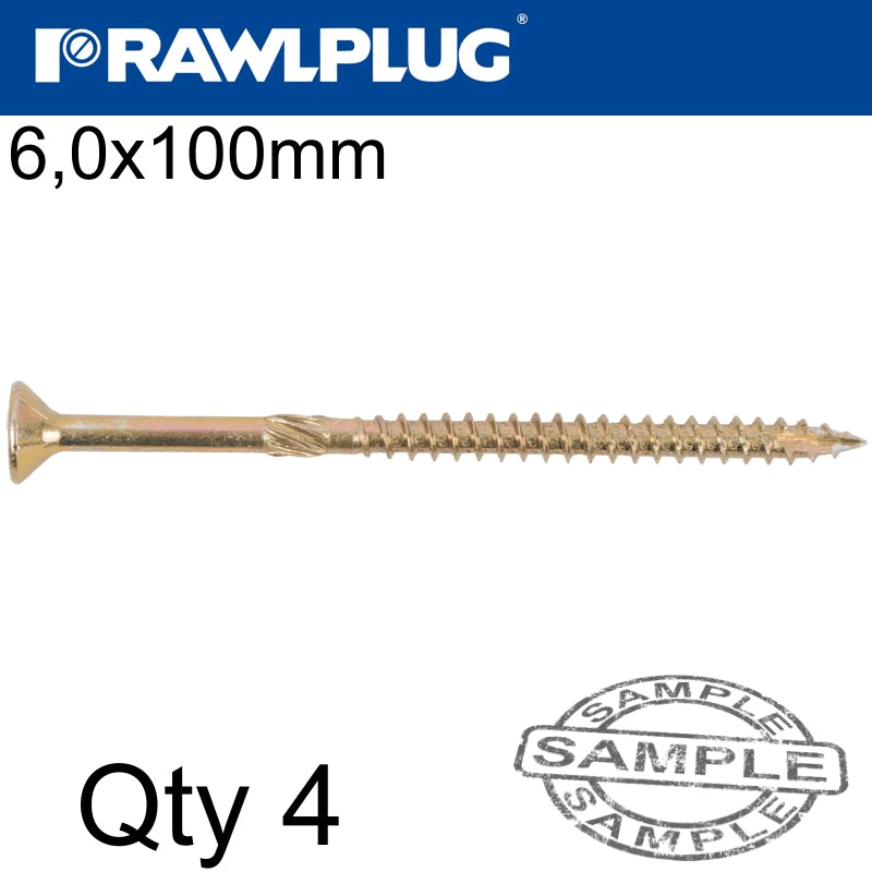 RAWLPLUG R-Ts Hardened Screw 6.0X100Mm X4 Per Bag