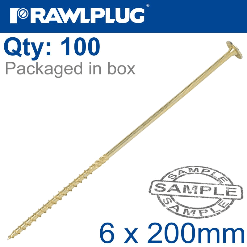 RAWLPLUG Timber Construction Screw 6X200 Mm Zinc Plated Box Of 100
