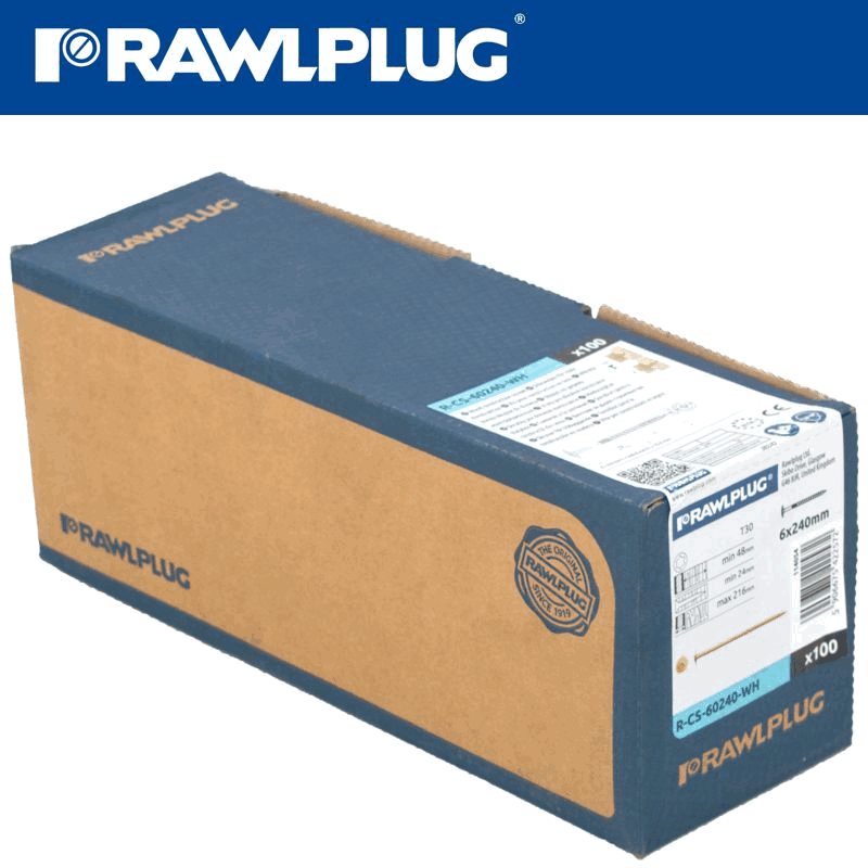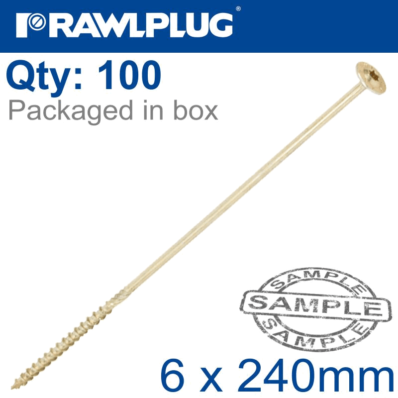 RAWLPLUG Timber Construction Screw 6X240 Mm Zinc Plated Box Of 100