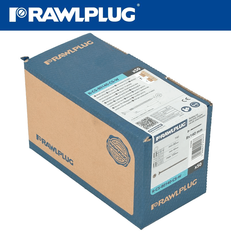RAWLPLUG Timber Construction Screw 8.0X140Mm X50-Box Csk Washer Head Torx T40