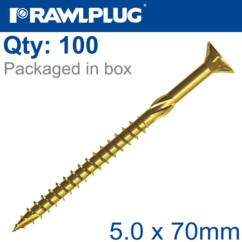 RAWLPLUG Torx T25 Chipboard Screw 5.0X70Mm X100-Box