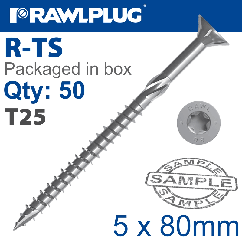 RAWLPLUG Torx T25 Chipboard Screw 5.0X80Mm X50-Box