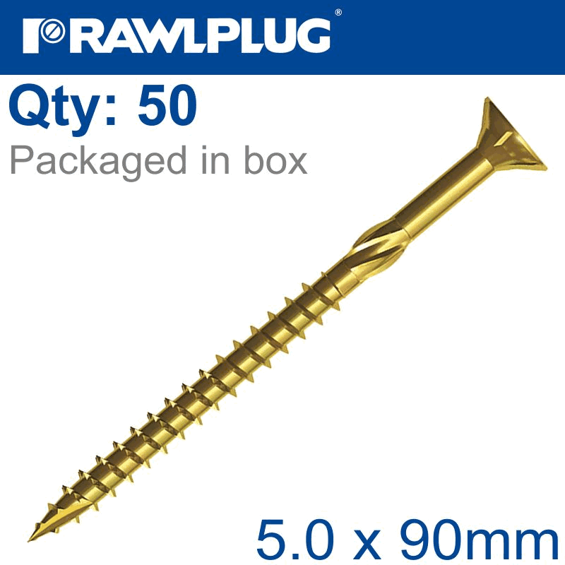 RAWLPLUG Torx T25 Chipboard Screw 5.0X90Mm X50-Box
