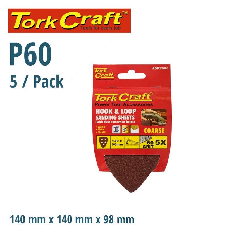 Sanding Triangle Vel Sheet 60 Grit 140 X 140 X 98mm 5/Pack Wit