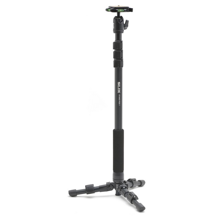 SLIK STANDPOD 7 is an unique monopod with independent legs convenient in the scene where a tripod cannot be used by the restriction of the shooting space.  Easy to adjust the monopod height with the lever lock.