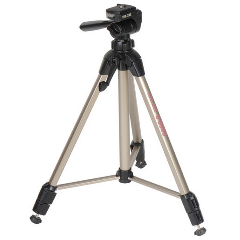 This slik u9000 tripod supports up to 4.5 lb, measures 23.2" when folded and includes a three-way, pan-and-tilt head. Its 3-section legs each feature flip locks for fast deployment, and can be positioned for a minimum height of 22.0" to a maximum height of 47.2", or 59.0" with its column fully raised. The column utilizes a geared movement for precise height adjustments and an integrated center brace allows the legs to be spread simultaneously as well as uniformly. The center brace helps to hold the legs in place, which include rubber feet with twist-out, metal spikes to further enhance stability on a wide variety of surfaces, including soft and uneven soil.