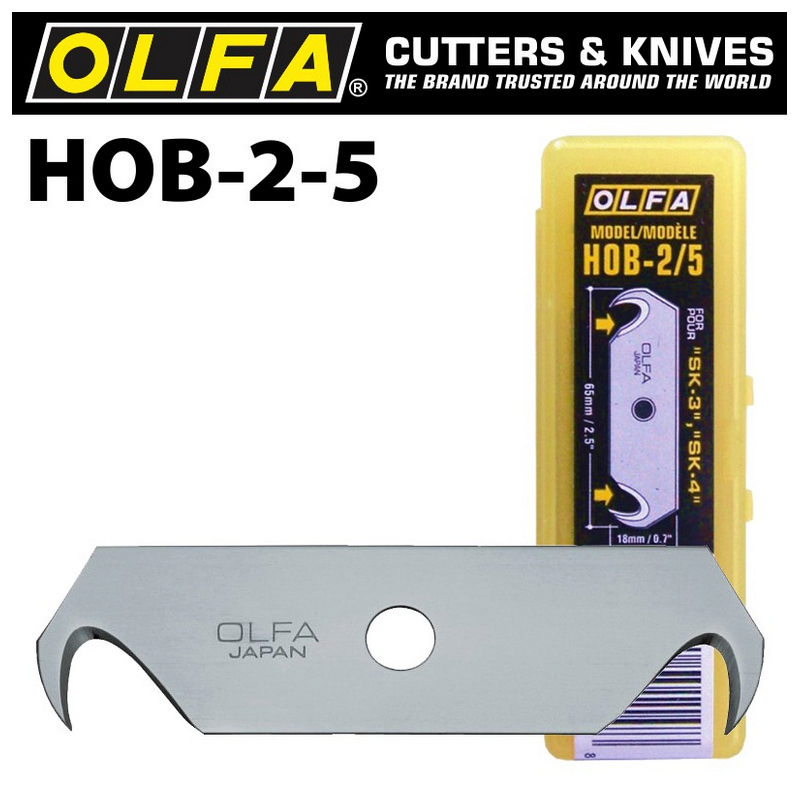 These OLFA® hook blades helps prevent injuries to you and damage to the surface below where you're cutting. The dual edge on the blades is ideal for cutting construction materials including flooring, insulation, conduit and roofing materials and also industrial materials such as laminates, plastics, fiberglass and rubber. (HOB-2/5)