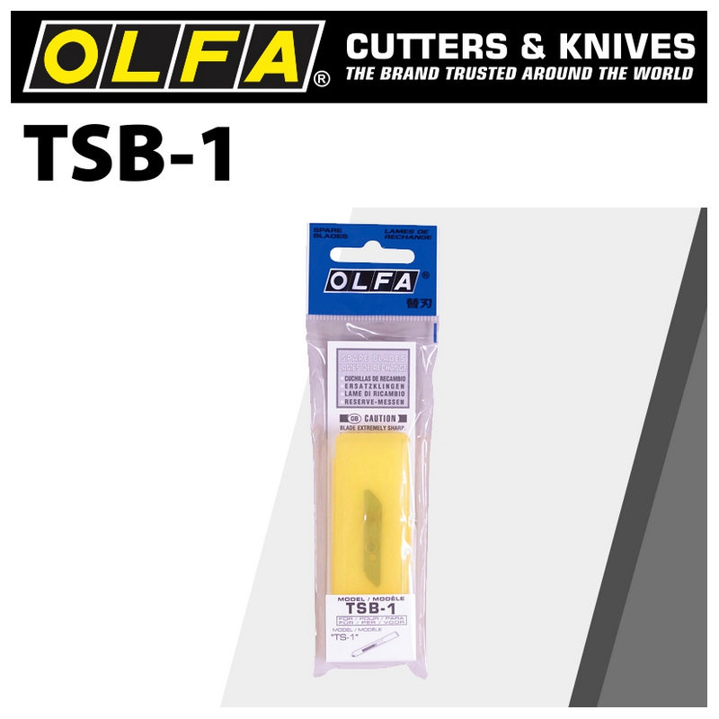 5 spare blades specially designed for the OLFA top sheet cutter “TS-1” in a plastic case. Packed in a plastic bag.