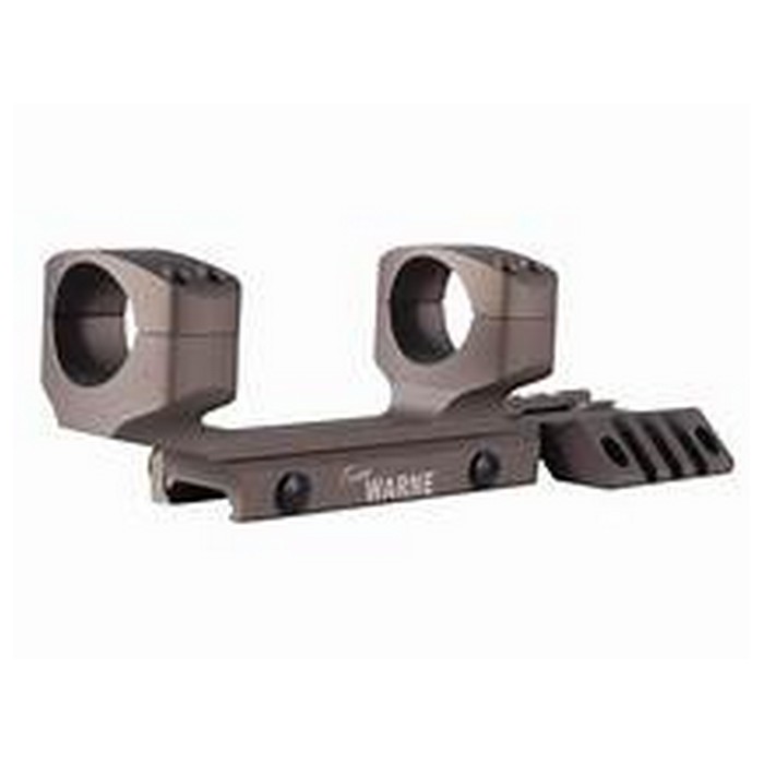 is a cantilever style scope mounting platform that allows proper scope installation on the popular AR-15 rifle. By design, the AR platform was intended for fixed iron sights and did not offer an acceptable mounting surface for optics. As the weapon system evolved from the military designate M16A1 to the M16A3 and M4, Picatinny mounting systems became standard equipment. However, the rail system found on the A3 and the M4 weapons still did not allow a variable power optic to be mounted far enough forward with conventional scope mounts. The Warne R.A.M.P modular mounting system positions the front ring forward of the upper receiver by 1”. This allows the optics to be mounted farther forward enabling the shooter to have proper head orientation whether upright or prone without sacrificing or compromising due to improper positioning.