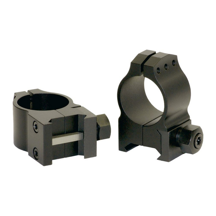 Super sturdy all steel rings feature 6 cross bolts to lock your scope down tight. The unique vertical design offers an increased level of rigidity for dependable performance even under the harshest conditions. These rings fit any Weaver style base.