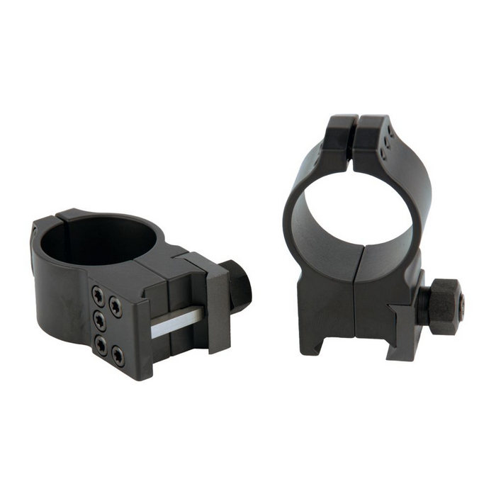 Super sturdy all steel rings feature 6 cross bolts to lock your scope down tight. The unique vertical design offers an increased level of rigidity for dependable performance even under the harshest conditions. These rings fit any Weaver style base.