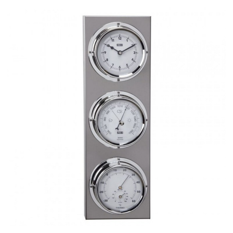 Anvi Barometer, Thermometer, Hygrometer, Clock - Stainless Steel- Rectangular