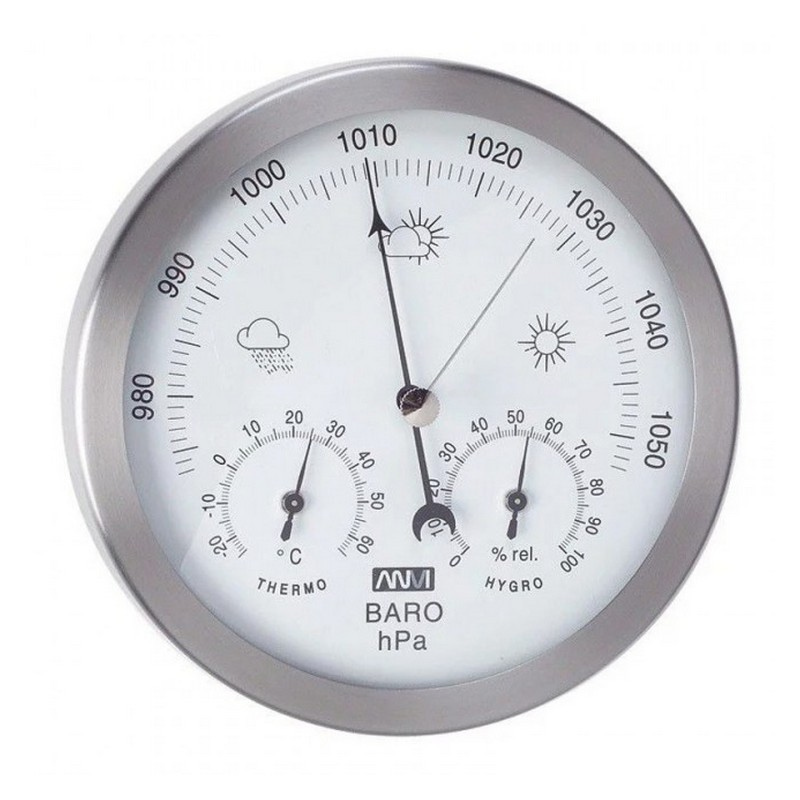 Anvi Barometer, Thermometer, Hygrometer - Stainless Steel - Circular 140x35mm