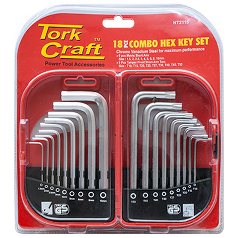 Tork Craft 18 Pce Combo Hex Key Chrome Vanadium Set