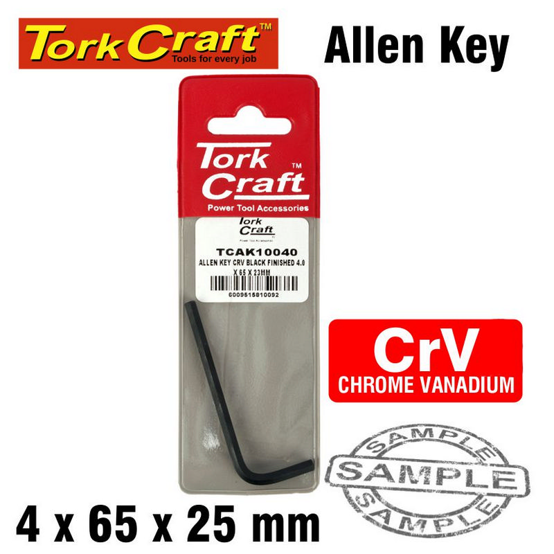 Tork Craft Allen Key Crv Black Finished 4.0 X 65 X 23mm