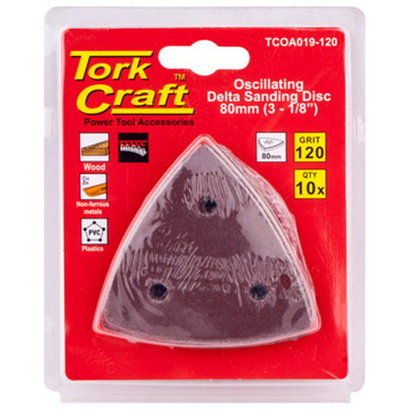 Tork Craft Oscilating Sandpaper A/O 80mm 10pc Delta Shape 120grit